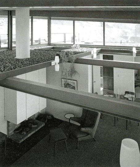 Under the program, about 30 homes were designed; and about 20 were built; with almost all of them in the Los Angeles area. The 1949 Eames House (#8) and the 1960 Stahl House (#22) are the most well-known ones. After construction, each Case Study House was open to the public for tours. For the Case Study House 26’s Open Houses in 1962, helicopters landed on the roof - aka helipad - ; one of the house’s innovative features.